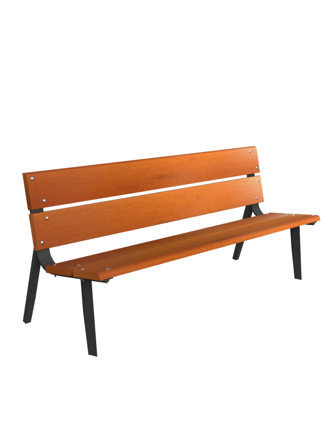 Banco para exterior de 2 mts. Madera tropical con tratamiento especial para exterior. Modelo de gran resistencia y durabilidad. Garantía de calidad: 3 años.